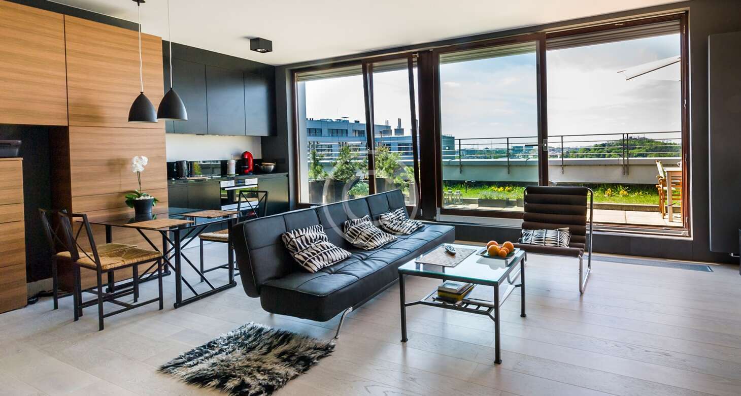 Wonderful apartment by the side of the river. The area is quiet and is perfect for summer vacations. Minimalistic design with modern furniture.